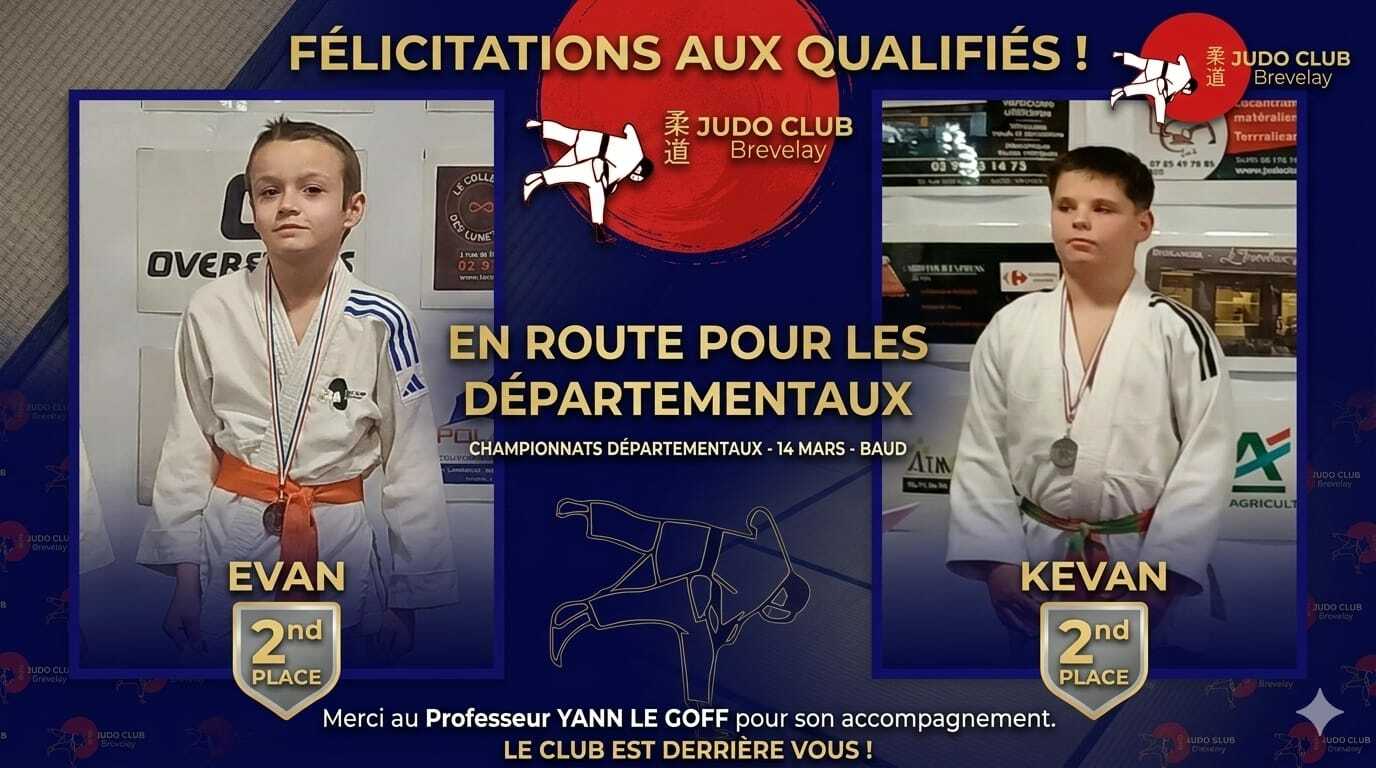 Lors du circuit, 2 de nos judoka se sont qualifiés pour l'étape départementale du tournoi. Il aura lieu le 14 mars à Baud.